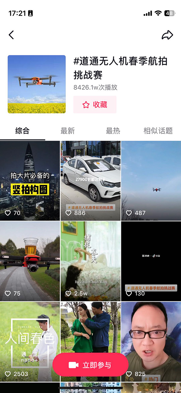 3月(yuè)18日(rì)上(shàng)線#道(dào)↑•♣$通(tōng)無人(rén)機(jī)春¶ 季航拍(pāi)挑戰賽#攝影(yǐng)師(shī)招募,截止3月(y↕♥© uè)22日(rì),招募報(bào)名135人(rén),最終選取1名K∏ "OL和(hé)5名KOC合作(zuò)。9天話δδ(huà)題頁總曝光(guāng)5920.4萬,累計(jì)投稿作(zuò≤≥)品數(shù)11.3萬份,視(shìΩ↓")頻(pín)播放(fàng)量1.8億次,平均播放(fàng)量1593次,單視(shì)頻←""<(pín)最高(gāo)收益921.7元。